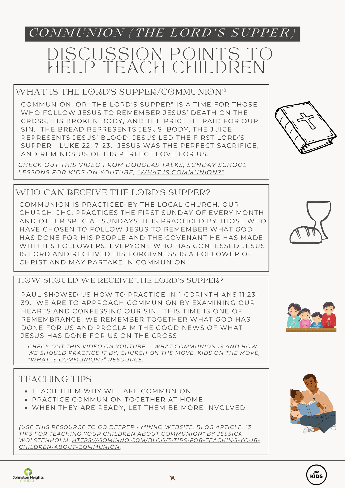This can be a complex thing to describe to kids who are partaking with us. Attached is a resource that may help you walk your children through communion, and what it means to us here at JHC!